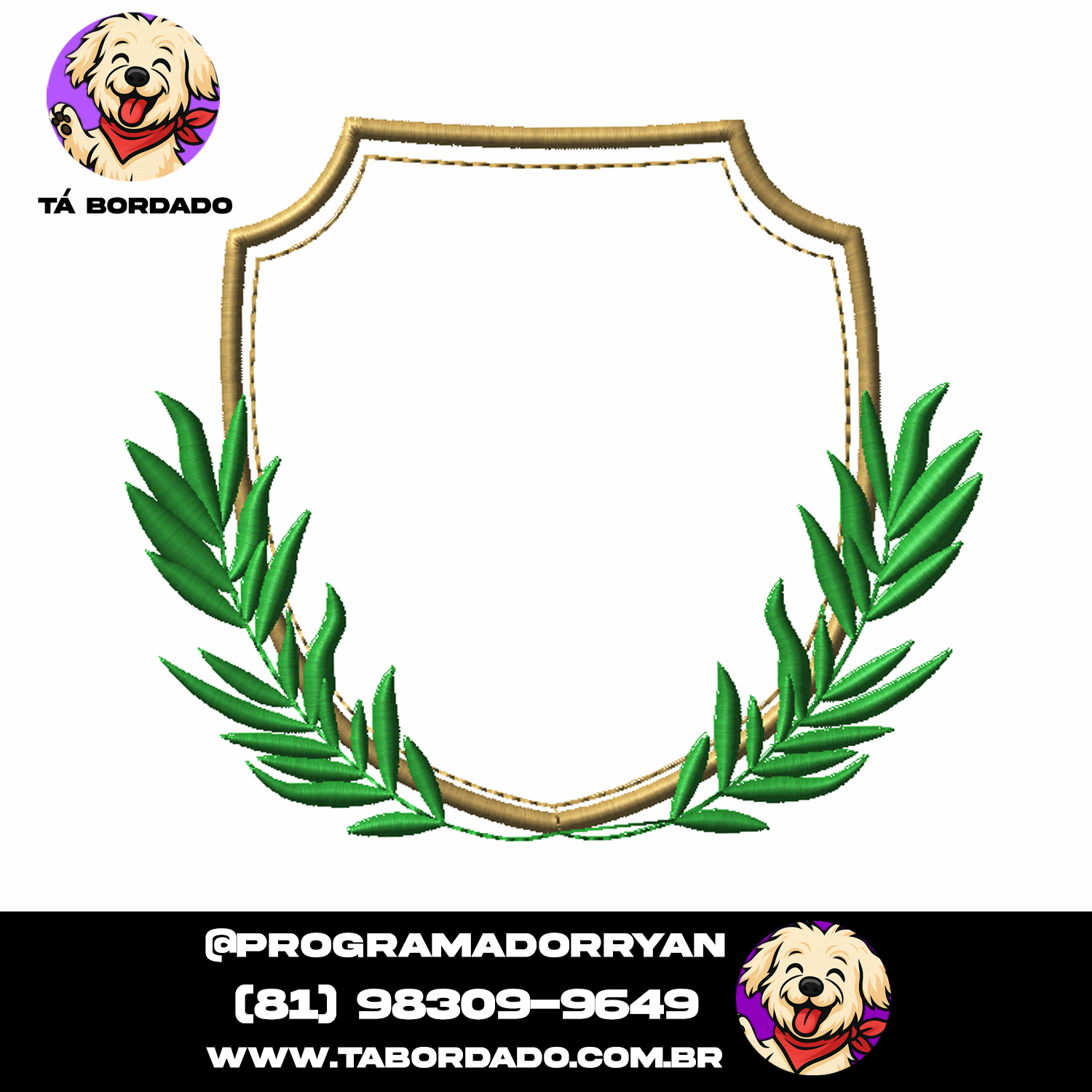 Matriz De bordado Brasão Floral com Ramos Verdes