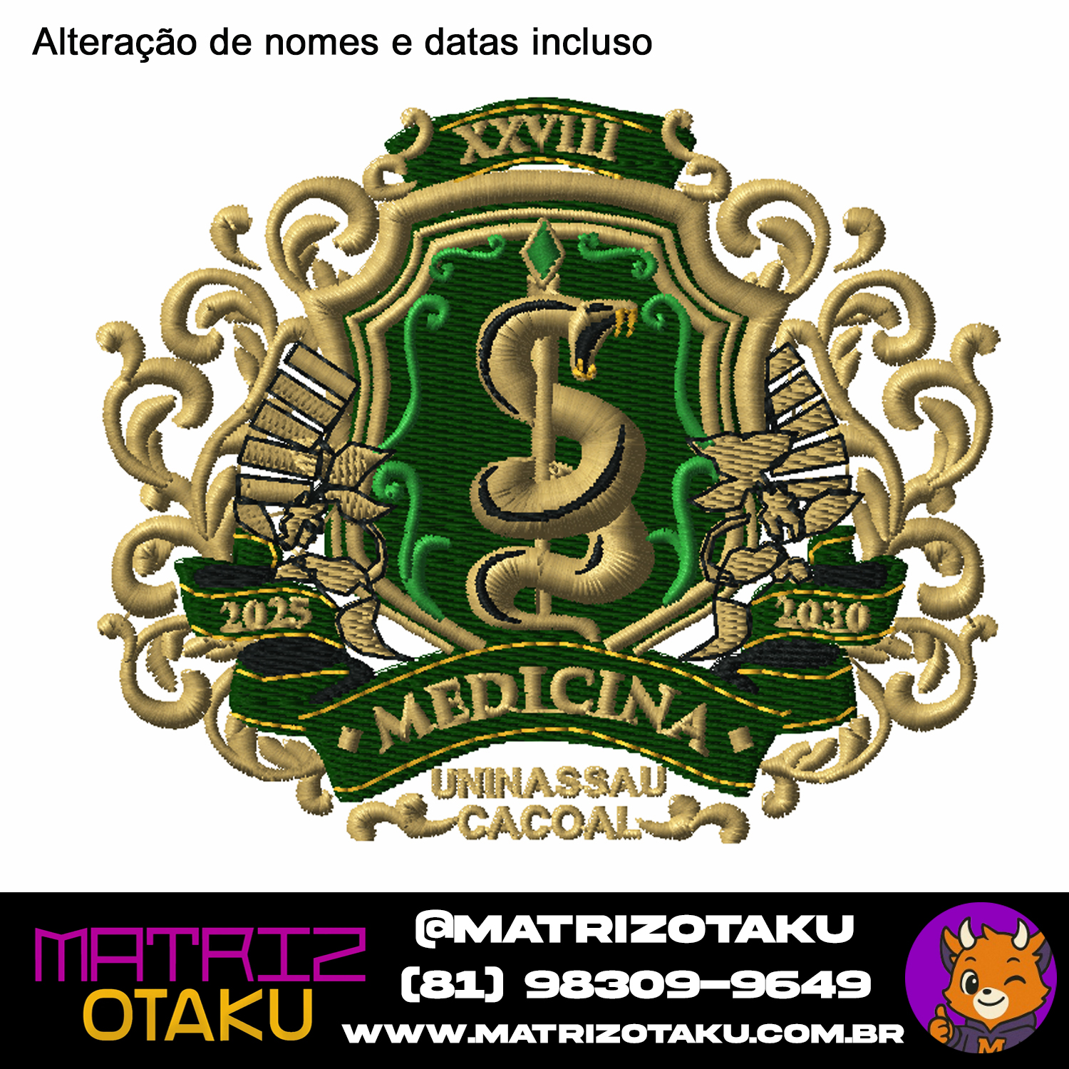Matriz de bordado Brasão Medicina Uninassau Luxo